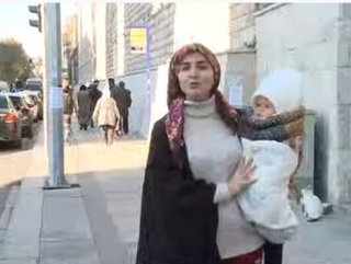Cuma namazı çıkışında İstanbul Fatih'teki Fatih Camii önüne giden CNN Türk muhabiri Sema Akbulut, kucağındaki Eylül adını verdiği oyuncak bebekle merdivenlere oturup el açtı.
