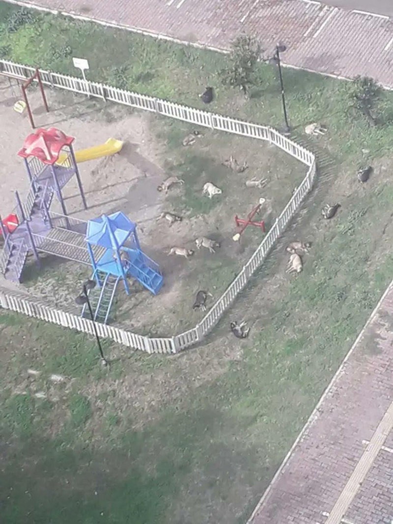 Fotoğrafta dikkat çeken şey ise parkın, sokak köpekleri tarafından adeta işgal edilmiş olması.