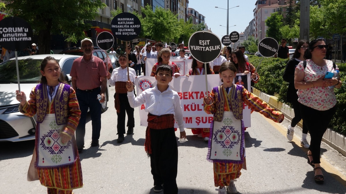 Ayrıca anmada, 'Çorum'u unutmadık, unutturmayacağız' yazılı döviz ve pankartlar da açıldı.