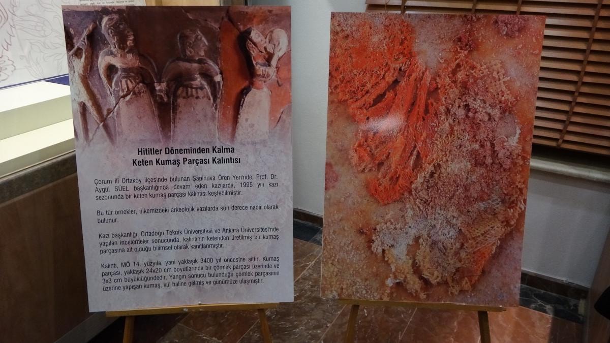 Milattan önce 14. yüzyıldan kalma, ketenden üretilmiş bir kumaş parçası olduğu kanıtlanan Hitit keteni kumaşı, Çorum Müzesi'ndeki depoda koruma altına alındı.