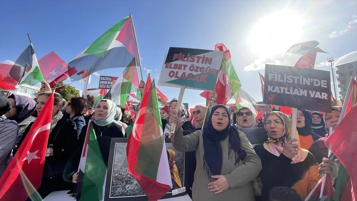 AB Komisyonu Başkanı Ursula von der Leyen'e hitaben yazılan mektubun okunduğu etkinlikte, İsrail'in saldırılarının son bulması ve Filistin'in özgürlüğüne kavuşması için dua da edildi.