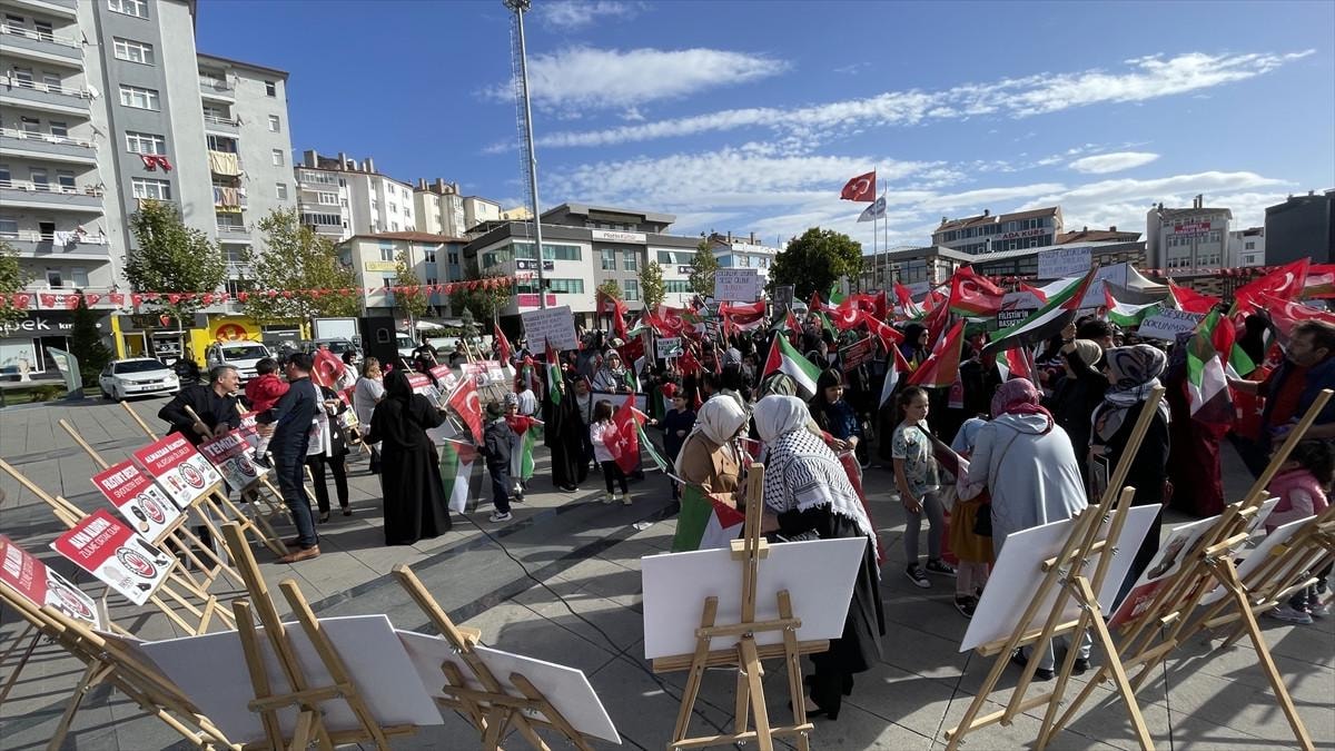 Çorum'da anneler, İsrail'in Gazze'ye yaptığı saldırılara tepki gösterdi.