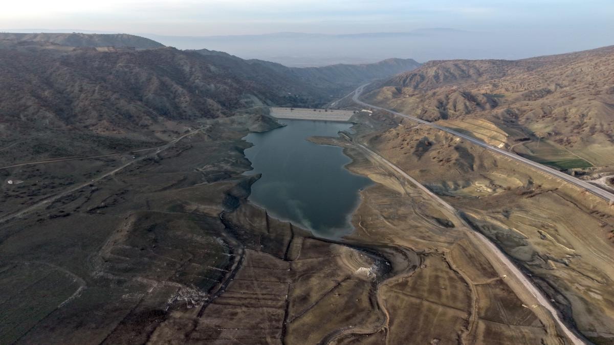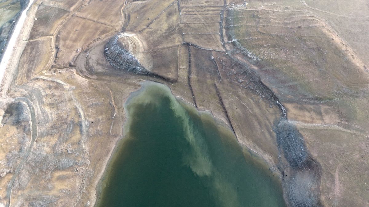 Hatap Barajı'nda havadan çekilen görüntüler ise kuraklığın boyutunu gözler önüne serdi.