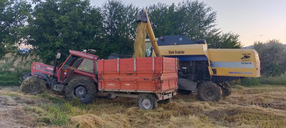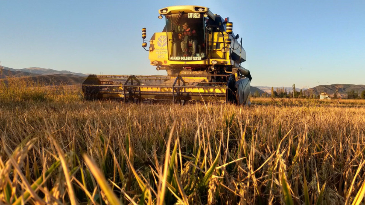 Mayıs ayında ekimine başlanan ve olgunluğunu yaklaşık 6 ayda tamamlayan çeltik, biçerdöverlerle hasat ediliyor.