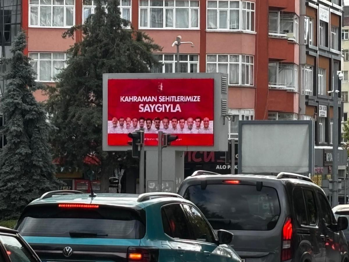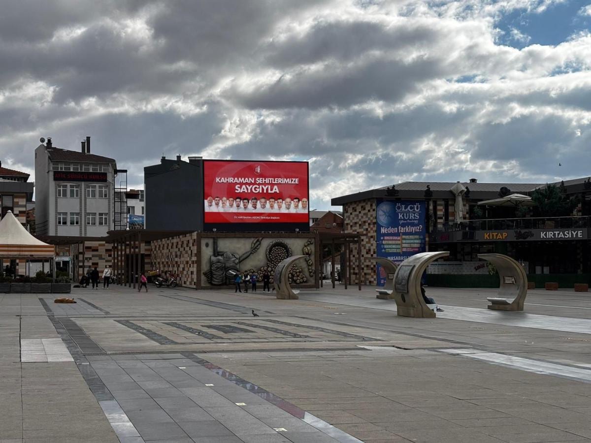 15 Temmuz hain darbe girişiminde demokrasi uğruna can veren Çorumlu şehitler; Erol Olçok, Abdullah Tayyip Olçok, Akif Kapaklı, Emin Güner, Mustafa Avcu, Ali Alıtkan, Ali Karslı, Mehmet Kocakaya, Mustafa Karasakal, Mustafa Solak, Osman Arslan, Ümit Çoban ve Yakup Kozan’ın fotoğraflarının yer aldığı görsel “Kahraman Şehitlerimize Saygıyla” mesajıyla şehrin tüm led ekranlarına yansıtıldı.