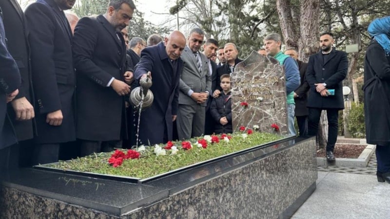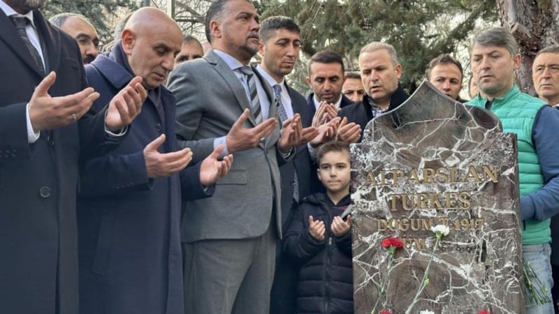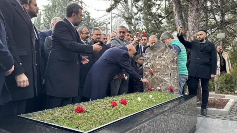 Beraberindeki heyetle birlikte Türkeş’in kabrine karanfiller bırakıp ibrikle su döken Altınok, çıkışta gazetecilerin sorularını cevapladı.