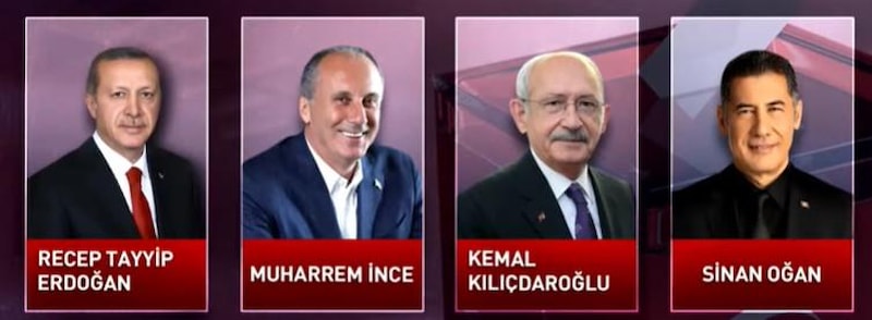 14 Mayıs 2023 Pazar günü yapılacak olan Cumhurbaşkanı seçimi ve 28. Dönem milletvekili genel seçiminde Cumhurbaşkanı adayları alfabetik sıraya göre Kılıçdaroğlu, Muharrem İnce, Recep Tayyip Erdoğan ve Sinan Oğan’dır.