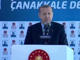 "Eşek ölür kalır semeri, insan ölür kalır eseri diyor Ziya Paşa. 15 Temmuz Şehitler Köprüsü yapıldığında birileri ona hayır dedi. Fatih Sultan Mehmet Köprüsü yapıldığında hayır dediler. Yavuz Sultan Selim Köprüsü'ne hayır dediler. Osmangazi Köprüsü yapıldığında hayır dediler. Şurada 3 yıl içinde 200 milyon insanın geçtiği Marmaray yapıldığında hayır dediler. Avrasya Tüneli'ne hayır dediler. Şimdi bugün 18 Mart Çanakkale Köprüsü'nün temelini atıyoruz. Hayır mı, evet mi? İnanın onlar yine hayır der.