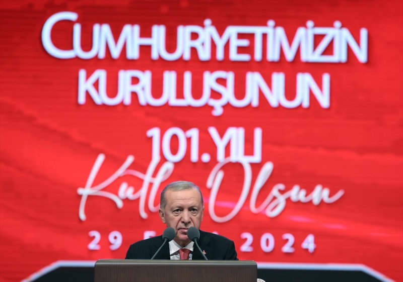 29 Ekim Özel Programı'nda açıklamalarda bulunan Cumhurbaşkanı Recep Tayyip Erdoğan, Cumhuriyet'in yeni bir devlet değil, Türk Milleti'nin binlerce yıllık devletler silsilesinin son silsilesi olduğuna vurgu yaptı.