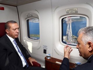 Cumhurbaşkanı Erdoğan, 3. Havalimanı inşaatında düzenlenen iftara katılmadan önce 3.köprü olan Yavuz Sultan Selim'i havadan inceledi.