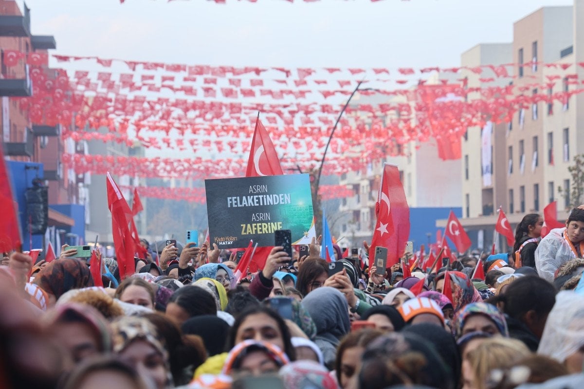 "Asrın İnşası Türkiye'nin Başarısı: 455 Bin Konut Tamam" temalı program, depremde ağır yıkıma uğrayan Hatay'da, yeniden inşanın sembol yapılarının yükseldiği Atatürk Caddesi'nde gerçekleştirildi.