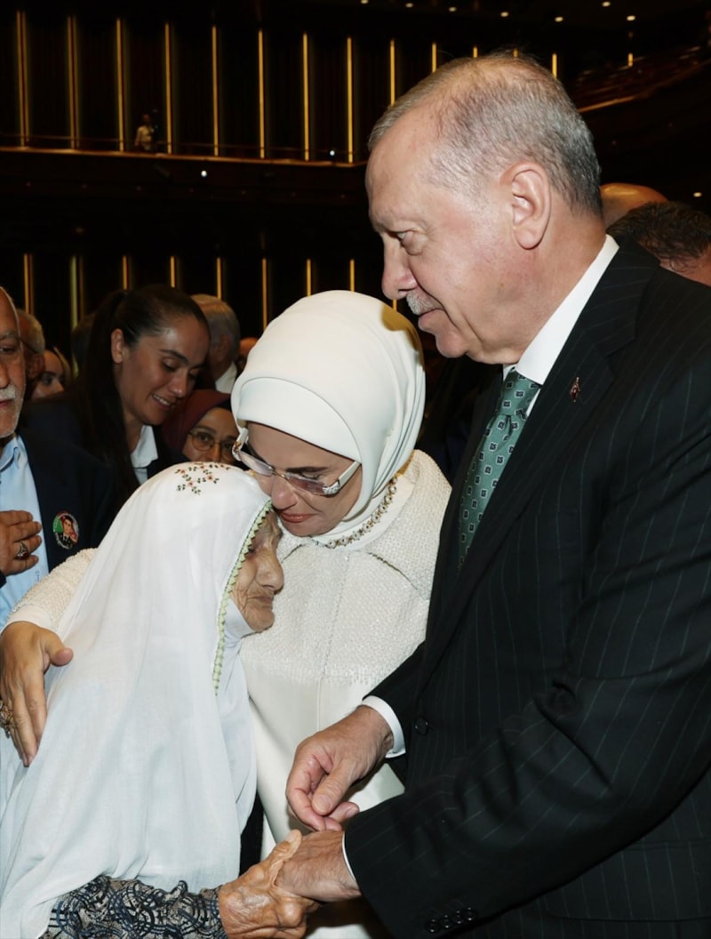 Cumhurbaşkanlığı Külliyesi'nde düzenlenen 30 Ağustos Zafer Bayramı programına katılan Cumhurbaşkanı Recep Tayyip Erdoğan, 93 yaşındaki Erzurumlu Şefika nineyle sohbet etti.