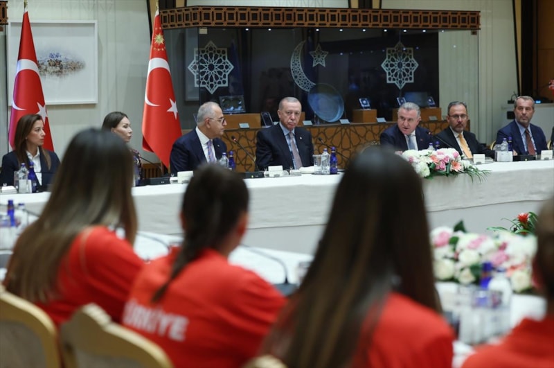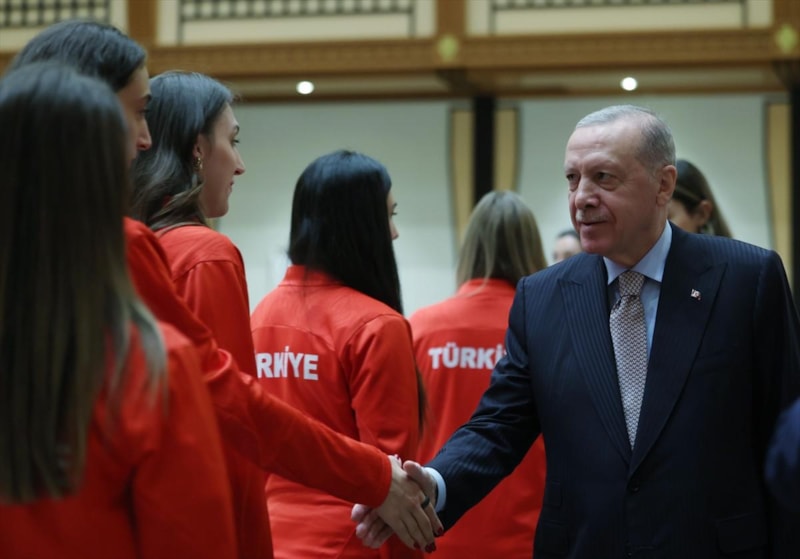 Cumhurbaşkanı Recep Tayyip Erdoğan, Tayland'ın başkenti Bangkok'ta düzenlenen 2025 FIVB Dünya Şampiyonası'nda gümüş madalya kazanan A Milli Kadın Voleybol Takımı'nı kabul etti.