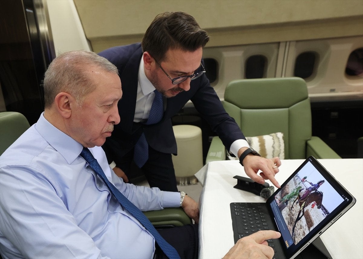 Anadolu Ajansı Yönetim Kurulu Başkanı ve Genel Müdürü Serdar Karagöz, Erdoğan'a fotoğraflar hakkında bilgi verdi.