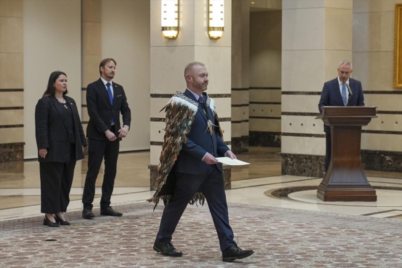 Cumhurbaşkanı Erdoğan tarafından kabul edilen Yeni Zelanda Büyükelçisi Greg David Lewis'in üzerindeki tüylü pelerin, dikkati çekti.