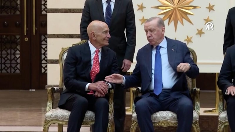 Cumhurbaşkanı Erdoğan'ın fotoğraf çekimi sırasında ABD Büyükelçisi Barrack ile sohbeti dikkati çekti.
