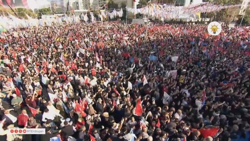 Cumhurbaşkanı Erdoğan konuyla ilgili, "Şu anda Adana'da meydanda 75 bin kişi var. Adana'nın gerçek belediyeciliğe olan hasretini dindirmeye az kaldı" ifadelerini kullandı.