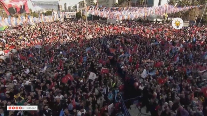 Cumhurbaşkanı Erdoğan, yerel seçim mitingleri kapsamında Adana'da vatandaşlara seslendi. Erdoğan, katılımın yüksek olduğu miting alanında 75 bin kişinin olduğunu söyledi.