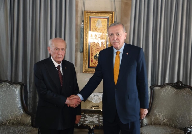 Erdoğan, burada MHP Genel Başkanı Devlet Bahçeli ile de görüşerek bir süre sohbet etti.