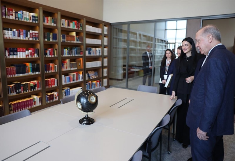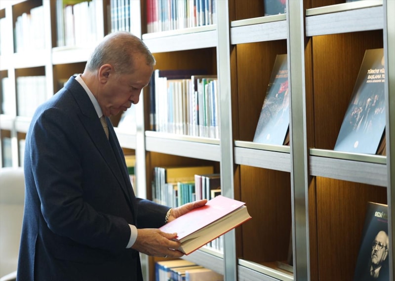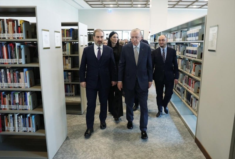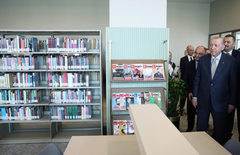 Ziyaret sırasında Cumhurbaşkanı Erdoğan, kütüphanedeki kitapları inceledi.