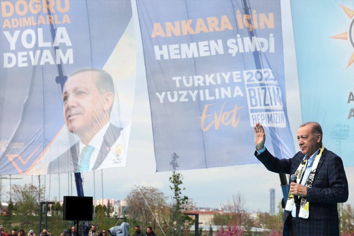 Erdoğan, miting için alanı dolduran yoğun kalabalığa hitap etti. Cumhurbaşkanı, muhalefetin seçim afişlerini ve CHP'li belediyeleri eleştirdi, raylı sistemlerle ilgili imza atılan işlere dikkati çekti.