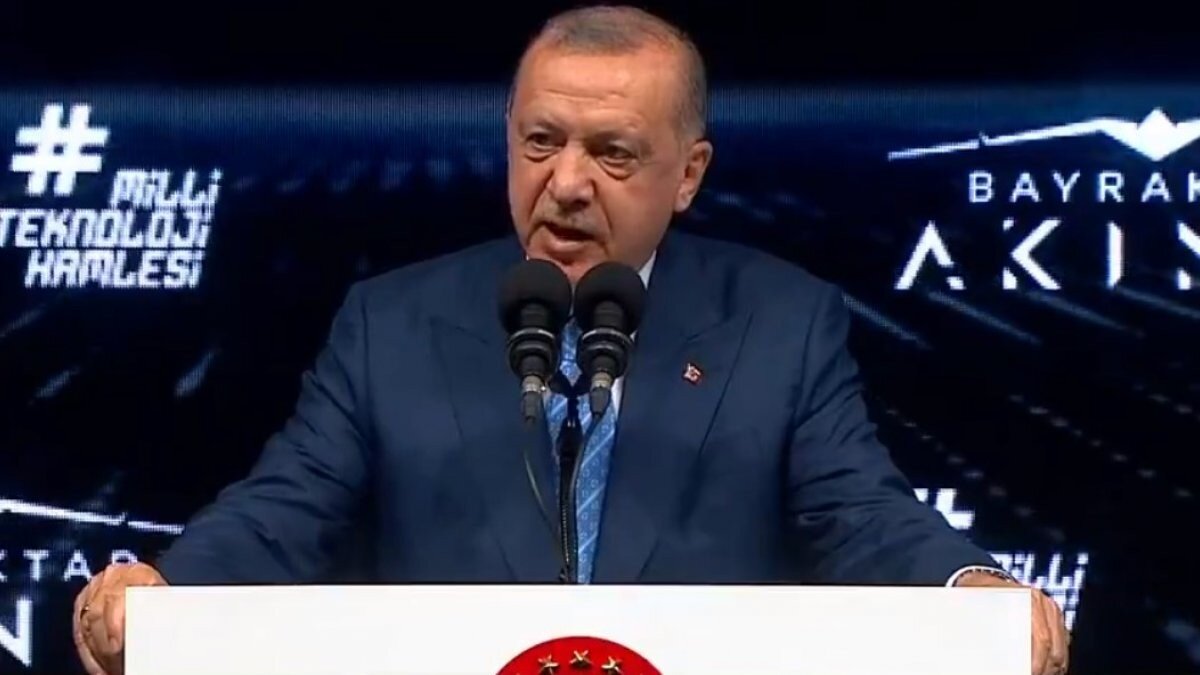 Cumhurbaşkanı Erdoğan, Baykar Akıncı Taarruzi İnsansız Hava Aracı (TİHA) Teslimat ve Kurs Bitirme Töreni'nde konuştu.