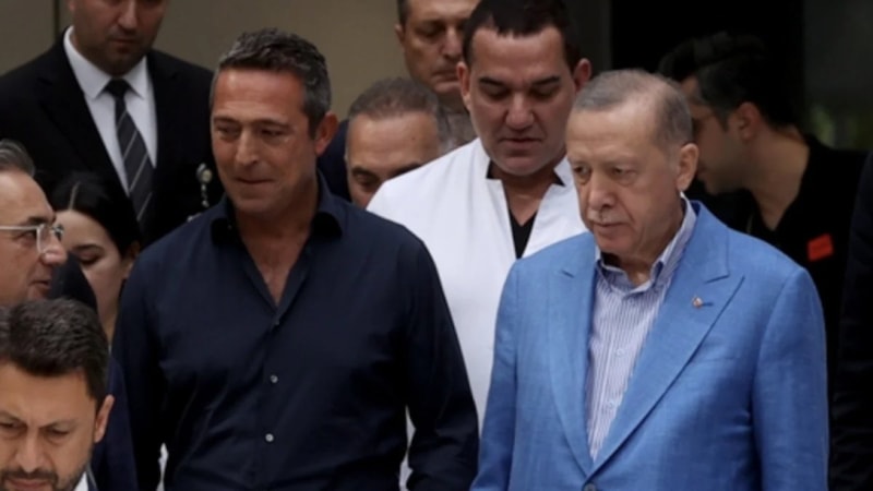 Sabancı ailesini tedavi gördüğü Koç Üniversitesi Hastanesi'nde ziyaret eden Cumhurbaşkanı Recep Tayyip Erdoğan, hastane çıkışında Fenerbahçe Başkanı Ali Koç ile ayaküstü sohbet etti.