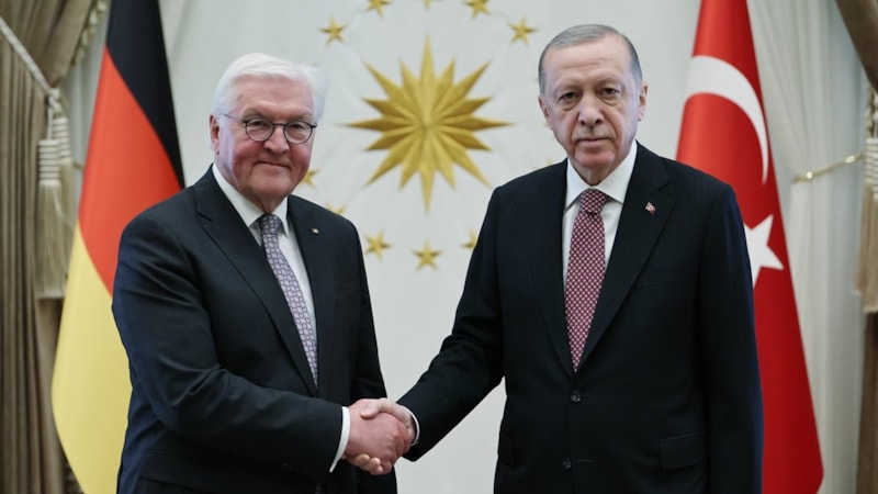 Alman mevkidaşı Steinmeier'i Külliye'de ağırlayan Cumhurbaşkanı Erdoğan, iki ülke arasındaki 50 milyar dolarlık ticaret hacminin dengeli olarak 60 milyar dolara ulaştırılması hedefinde olduklarını söyledi.