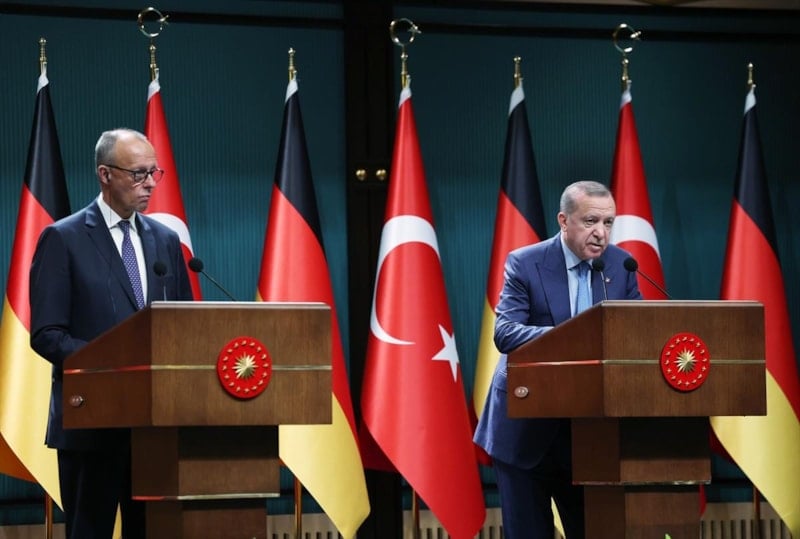 Resmi ziyaret kapsamında Türkiye'ye gelen Almanya Başbakanı Friedrich Merz ile Cumhurbaşkanı Erdoğan ortak basın toplantısı düzenledi.