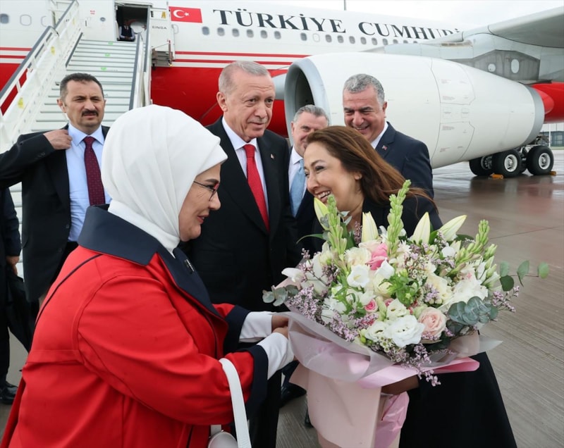 "TUR" uçağıyla Berlin'e gelen Erdoğan'ı, Berlin Havalimanı'nda, Gençlik ve Spor Bakanı Osman Aşkın Bak, Berlin Büyükelçisi Ahmet Başar Şen ve diğer ilgililer karşıladı.