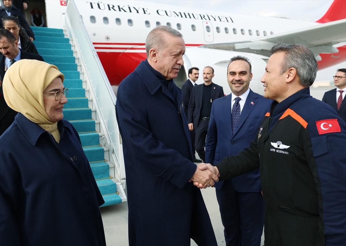 Cumhurbaşkanı Erdoğan, Türkiye'nin ilk uzay misyonunu başarıyla tamamlayarak yurda dönen Alper Gezeravcı ile Esenboğa Havalimanı'nda bir araya geldi.