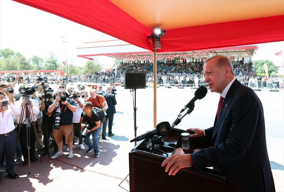 Kıbrıs Barış Harekatı'nın 50'nci yıl dönümü kutlamaları kapsamında Kıbrıs'a giden Cumhurbaşkanı Recep Tayyip Erdoğan, kürsüde kısa bir konuşma da yaptı.