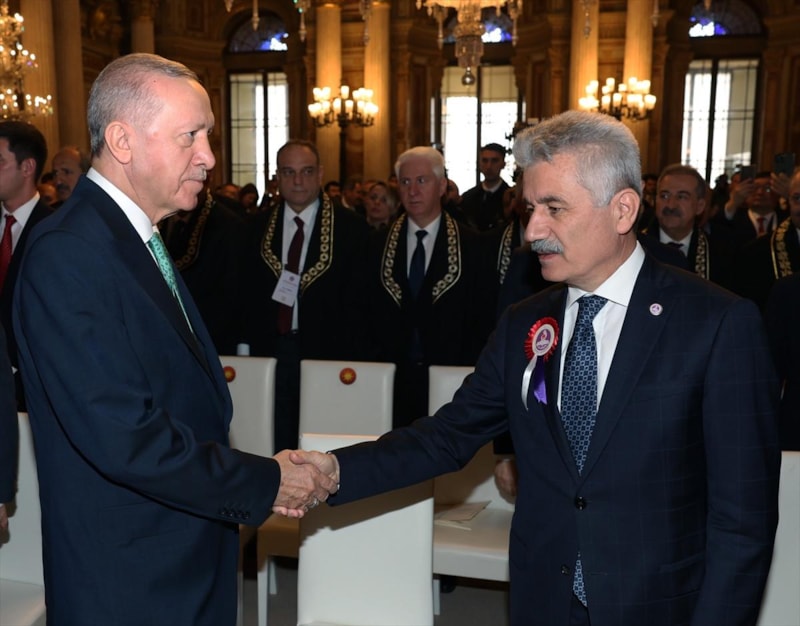 Cumhurbaşkanı Erdoğan'ı Anayasa Mahkemesi Başkanı Kadir Özkaya karşıladı.