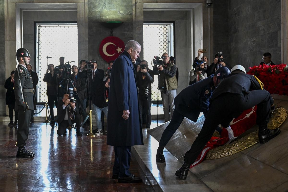 Cumhurbaşkanı Erdoğan Atatürk mozolesine çelenk bıraktı ve beraberinde saygı duruşu ve İstiklal Marşı gerçekleştirildi.
