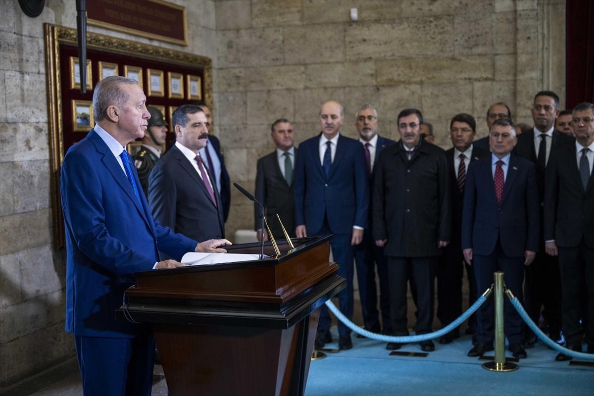Bir diğer yandan devlet erkanı Misak-ı Milli Kulesi’ne geçerken Cumhurbaşkanı, Anıtkabir Özel Defteri’ne şu cümleleri yazdı;