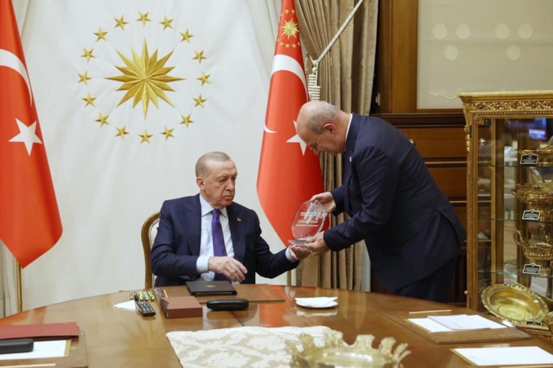 Baran kabulde, ATO’nun dijital dönüşüm alanında yenilikçi bir vizyonla hayata geçirdiği, yapay zeka destekli ATONET Akıllı Asistan projesiyle 2025 Melbourne Dünya Odalar Yarışması’nda 41 ülkeden 83 proje arasından sıyrılarak ‘En İyi Oda İnovasyonu Projesi’ kategorisinde elde ettiği dünya birinciliği ödülünü de Erdoğan’a takdim etti.