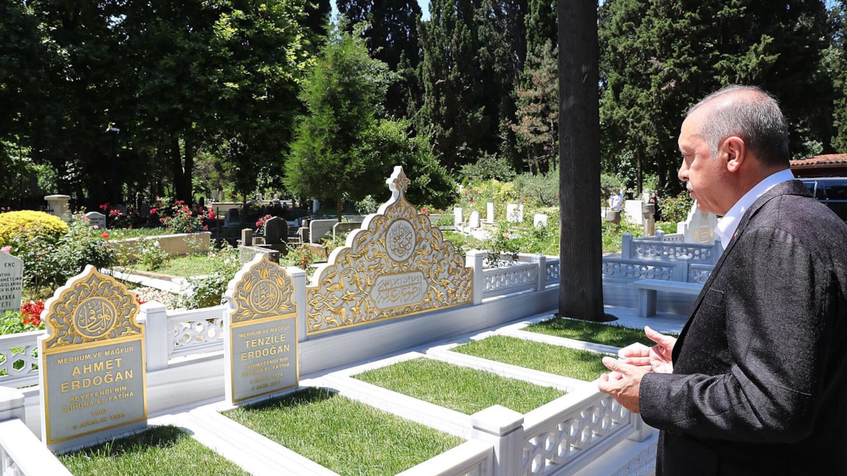 Annesi Tenzile Erdoğan ve babası Ahmet Erdoğan'ın kabrini ziyaret eden Erdoğan, dua etti.