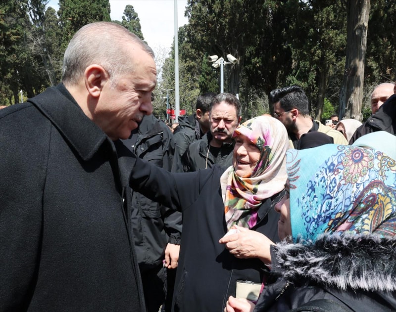 Annesi Tenzile Erdoğan ve babası Ahmet Erdoğan'ın kabrini ziyaret eden Erdoğan, daha sonra Dolmabahçe Çalışma Ofisi'ne geçti.