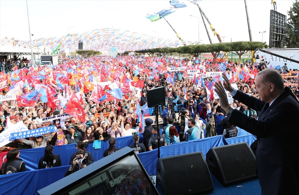 Erdoğan'ın son durağı Antalya oldu. Burada toplanan kalabalığa seslenen Erdoğan, partisinin imza attığı projeleri ve vaatleri sıraladı.