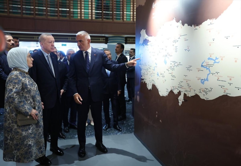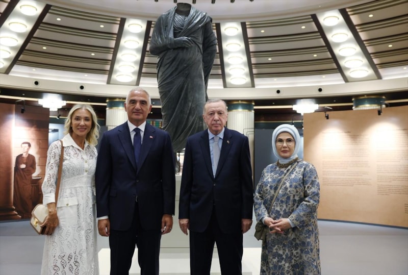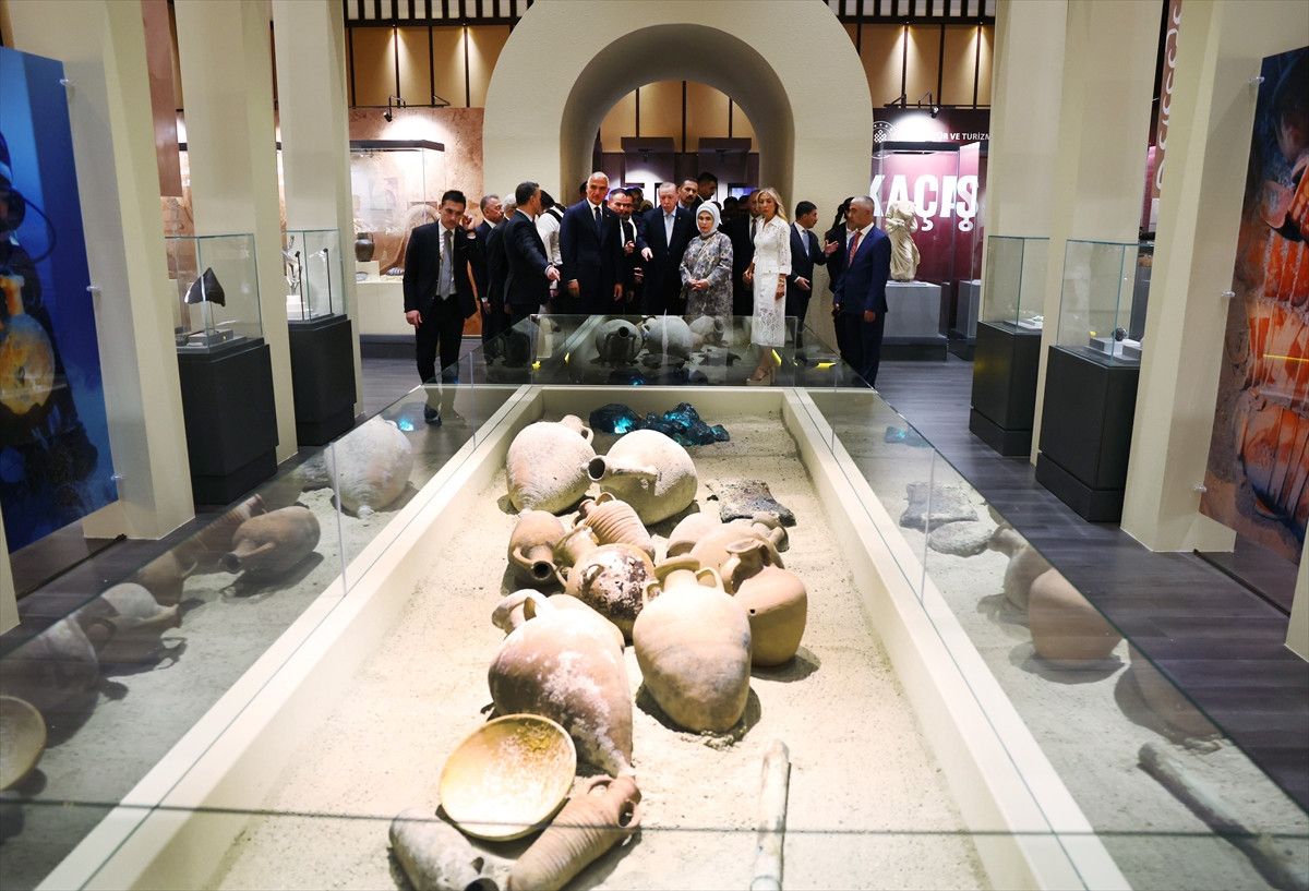 Cumhurbaşkanı Erdoğan'a, eşi Emine Erdoğan, Kültür ve Turizm Bakanı Mehmet Nuri Ersoy ve eşi Pervin Ersoy da eşlik etti.