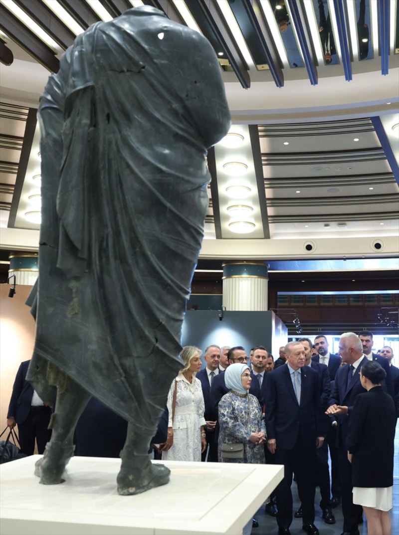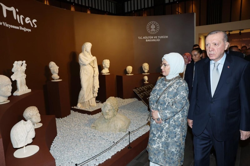 Cumhurbaşkanı Recep Tayyip Erdoğan, Cumhurbaşkanlığı Millet Kütüphanesi’nde düzenlenen Uluslararası Arkeoloji Sempozyumu ve Arkeolojinin Altın Çağı Sergisi açılışına katılarak sergiyi gezdi. Cumhurbaşkanı Erdoğan'a eşi Emine Erdoğan eşlik etti.