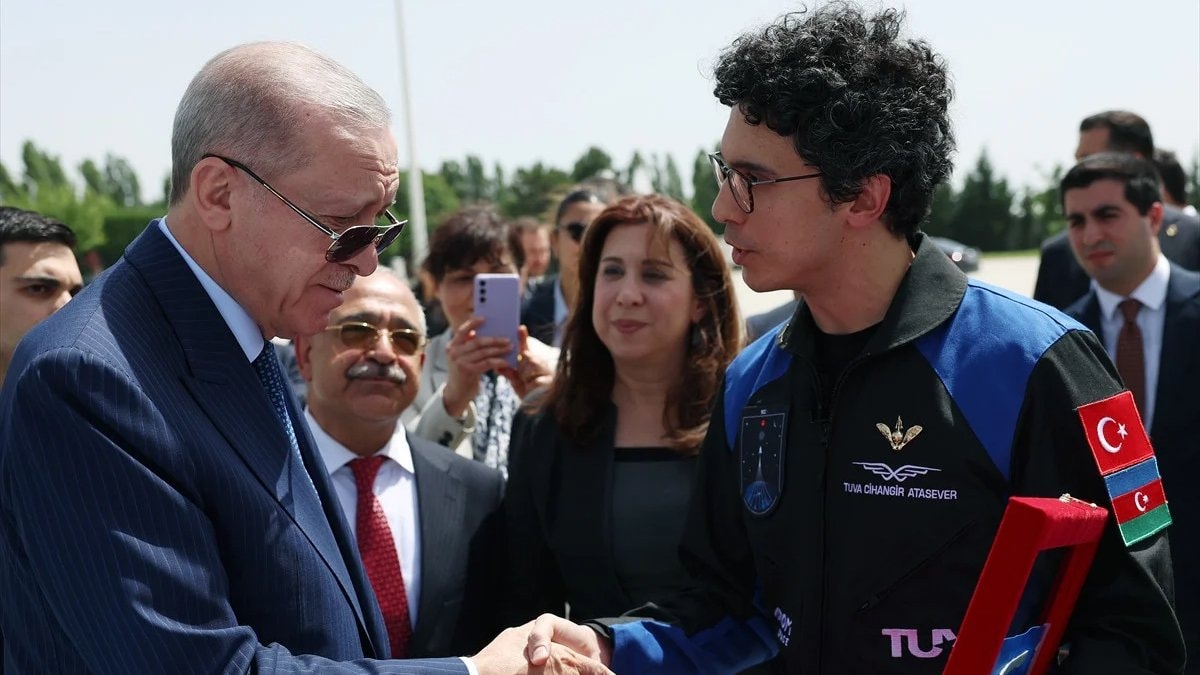 Türkiye-İspanya 8. Hükümetler Arası Zirvesi'ne katılmak üzere İspanya'ya giden Cumhurbaşkanı Recep Tayyip Erdoğan, Madrid'e hareketi öncesi Esenboğa Havalimanı'nda, yörünge altı araştırma görevini tamamlayan Türkiye'nin ikinci astronotu Tuva Cihangir Atasever ile bir araya geldi.