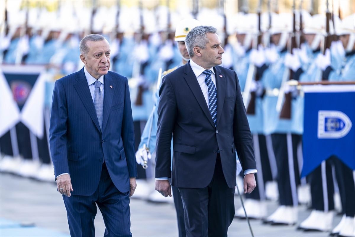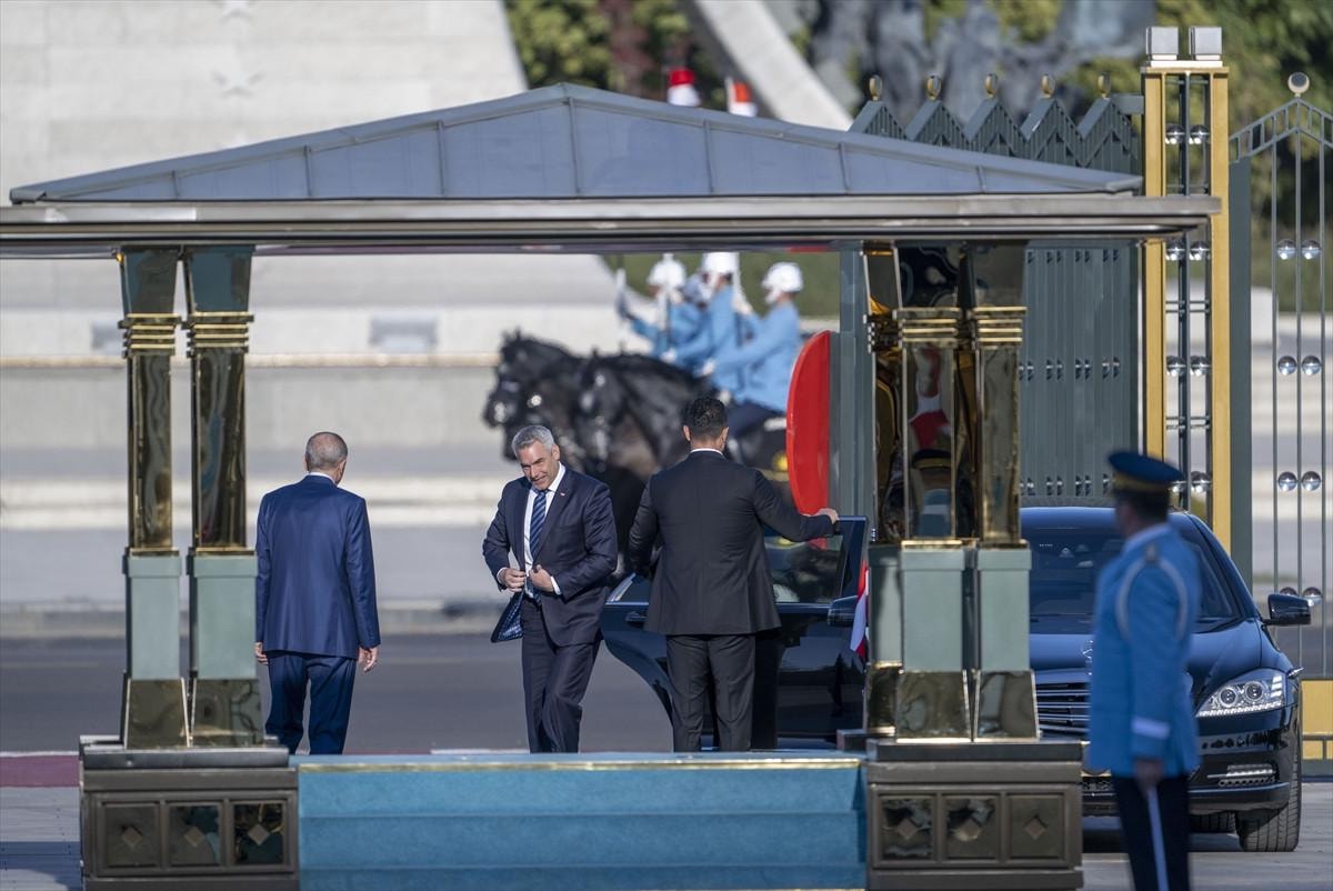 Burada Nehammer, resmi törenle karşılandı. İki liderin tören alanındaki yerlerini almasının ardından 21 pare top atışı eşliğinde iki ülke milli marşları çalındı.