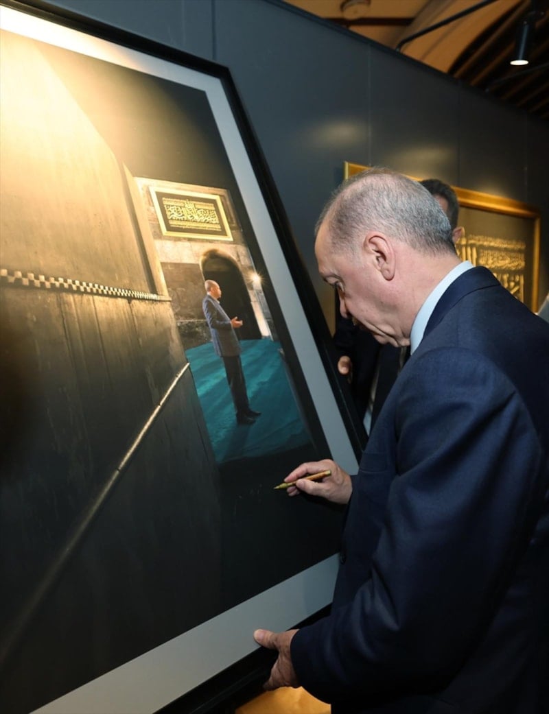 Sergiyi gezen ve fotoğrafları tek tek inceleyen Cumhurbaşkanı Erdoğan, kendisine ait olan fotoğrafı imzaladı.