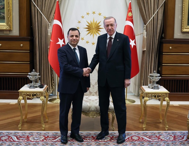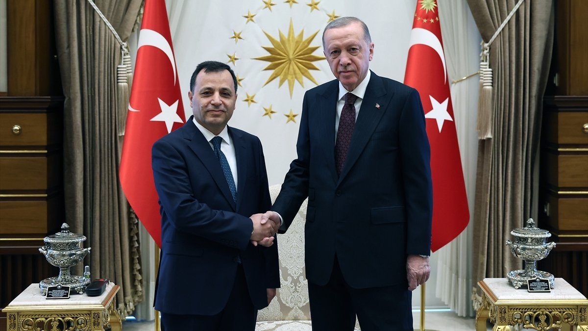 Erdoğan, Arslan'ı Cumhurbaşkanlığı Külliyesi'nde kabul etti. İkili, görüşme öncesinde el sıkışırken kameralara poz verdi.