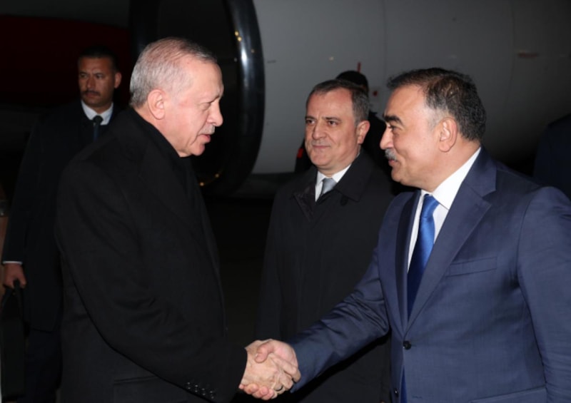 Cumhurbaşkanı Erdoğan'ı, Haydar Aliyev Uluslararası Havalimanı'nda Azerbaycan hükümetini temsilen Dışişleri Bakanı Ceyhun Bayramov, Türkiye Cumhuriyeti Bakü Büyükelçisi Cahit Bağcı ve eşi Leyla Bağcı, Azerbaycan Görev Gücü Grup Komutanı Korgeneral Bahtiyar Ersay ve Askeri Ataşe Tuğgeneral Gaffar Gören karşıladı.