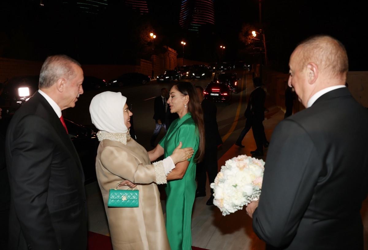 Erdoğan, eşi Emine Erdoğan ile birlikte Cumhurbaşkanı İlham Aliyev ve eşi Mihriban Aliyeva akşam yemeğinde bir araya geldi.