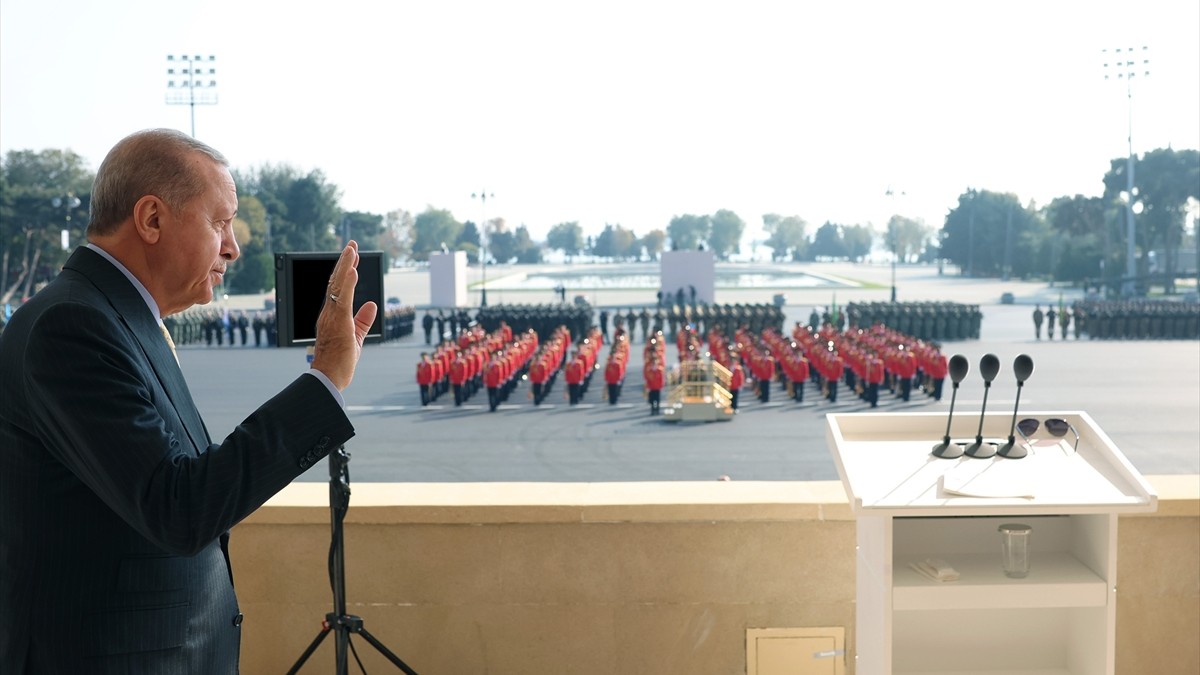 Cumhurbaşkanı Recep Tayyip Erdoğan, Azerbaycan'ın Karabağ Zaferi'nin yıl dönümü olan 8 Kasım Zafer Günü dolayısıyla Bakü'de düzenlenen törene katıldı.