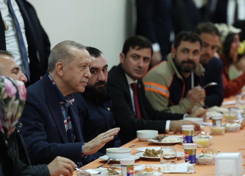 Cumhurbaşkanı Erdoğan açılış sonrası Balıkesir'e gelen depremzede vatandaşlarla yemekte bir araya geldi.