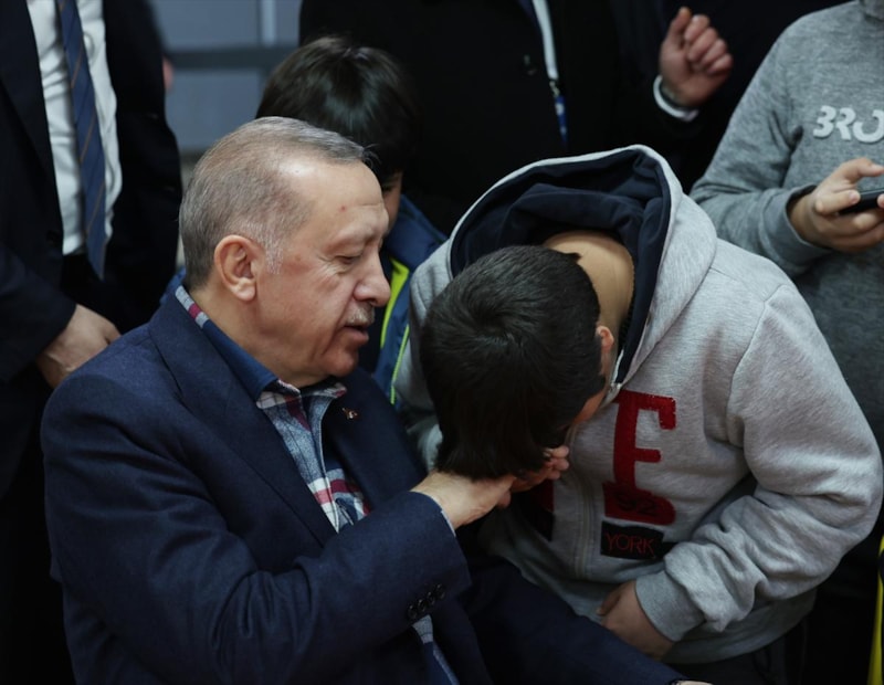 Depremzede ailelerle tek tek ilgilenen Cumhurbaşkanı Erdoğan, yanına gelen çocuklarla da uzun süre sohbet etti.